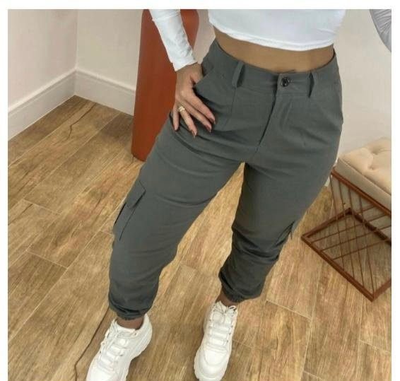 Sua modelagem confortàvel com cintura mèdia ,bolsos cargo funcionais ,fecho frontal com botão e zìper,presilhas para cinto,versàtil:combina com tênis,coturno ou atè salto
