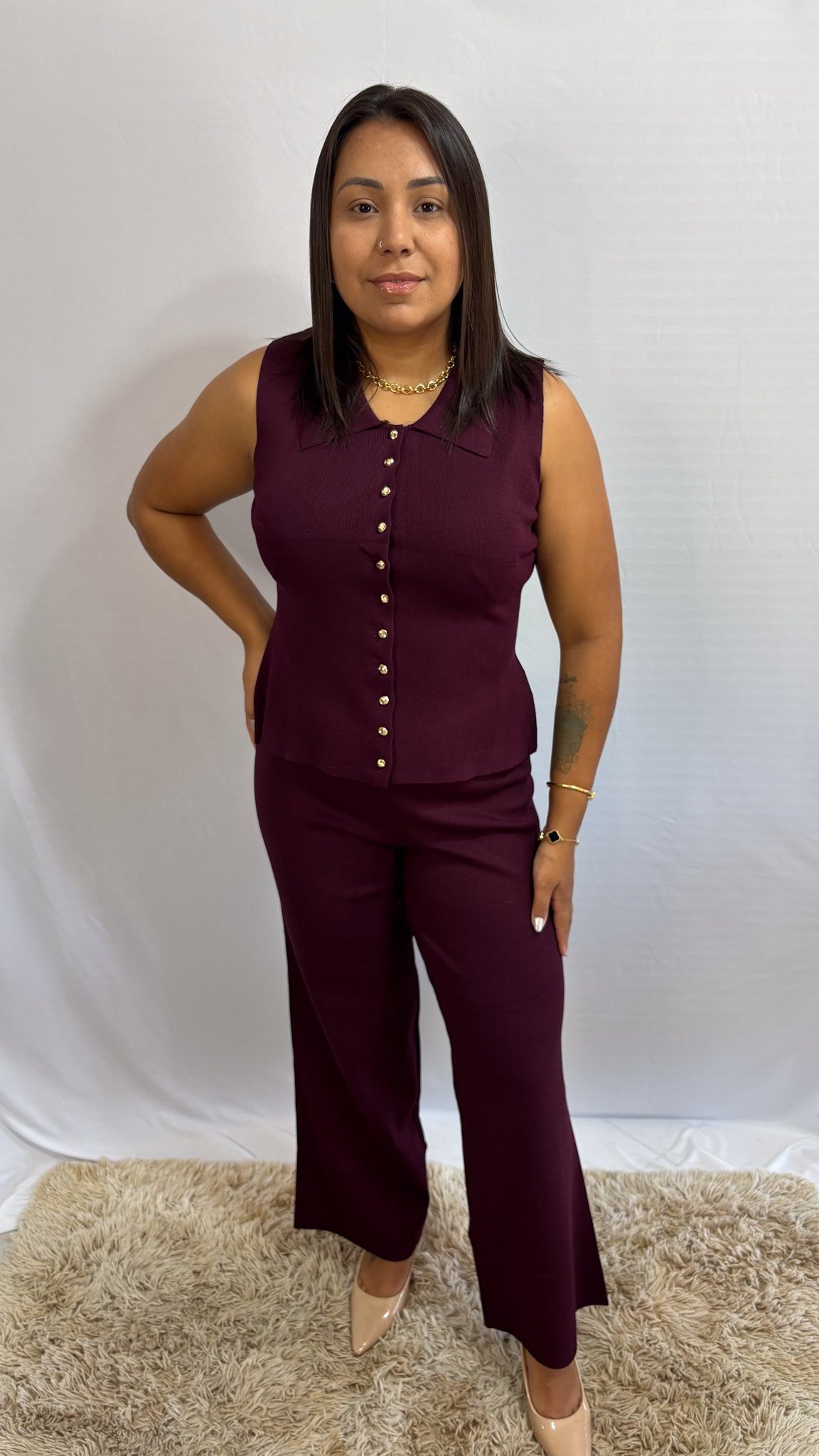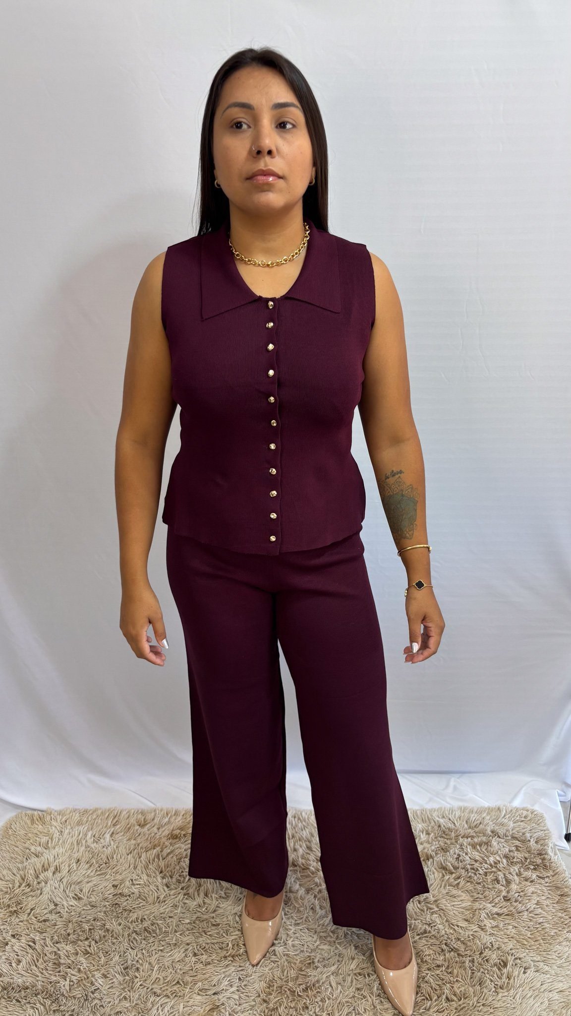 Conjunto modal bordô