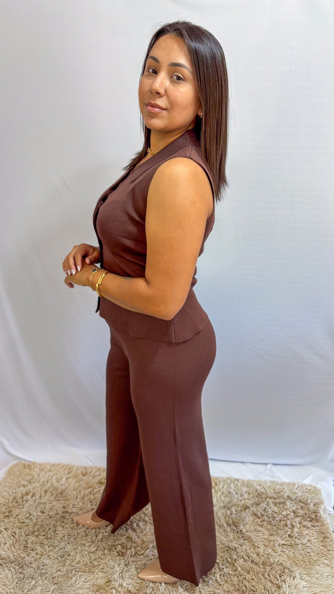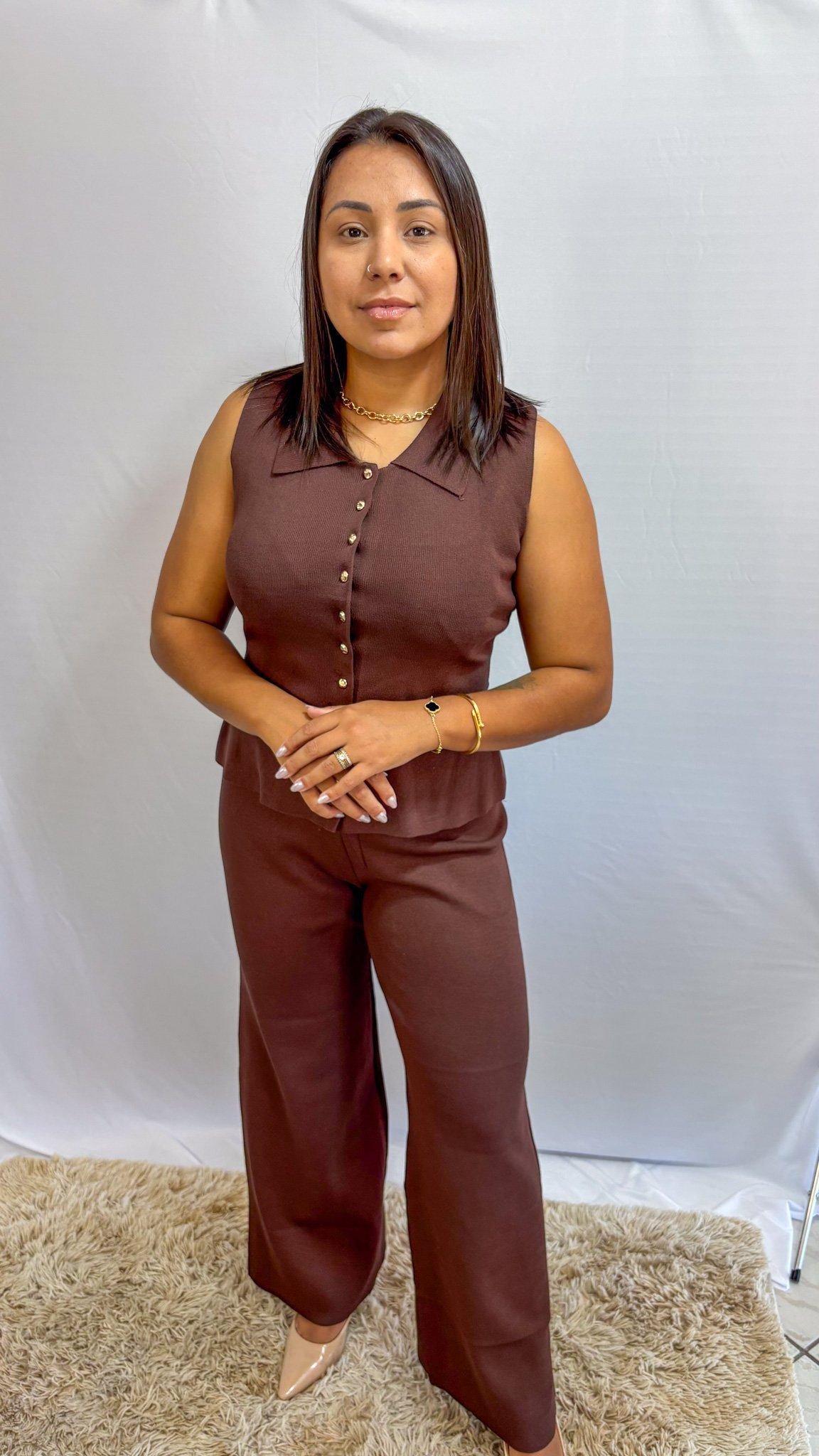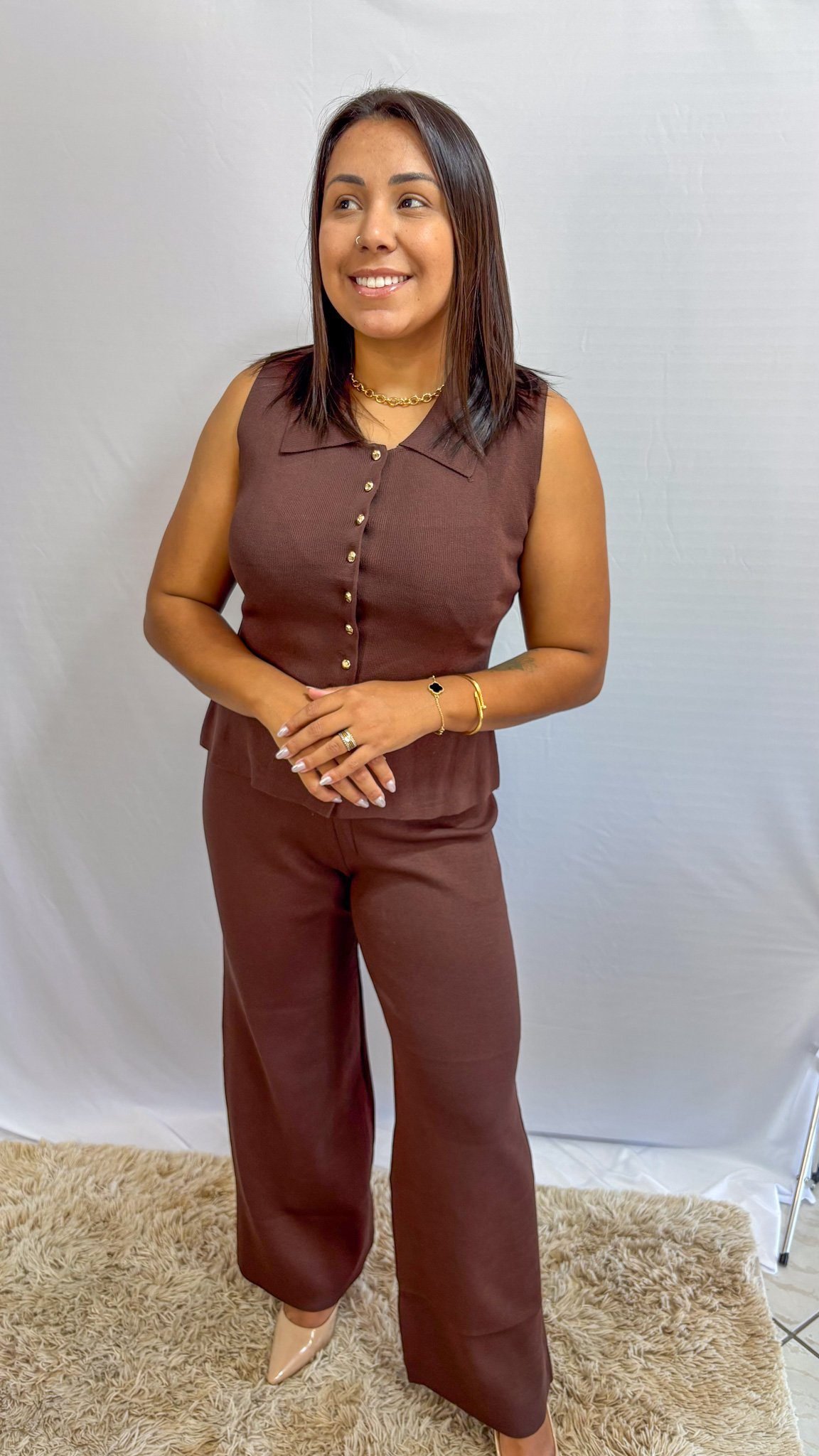 O Conjunto modal Marrom sem manga une conforto, elegância e praticidade em uma única peça. Seu tecido macio aliado à modelagem moderna garante um look charmoso e confortável para o dia a dia.