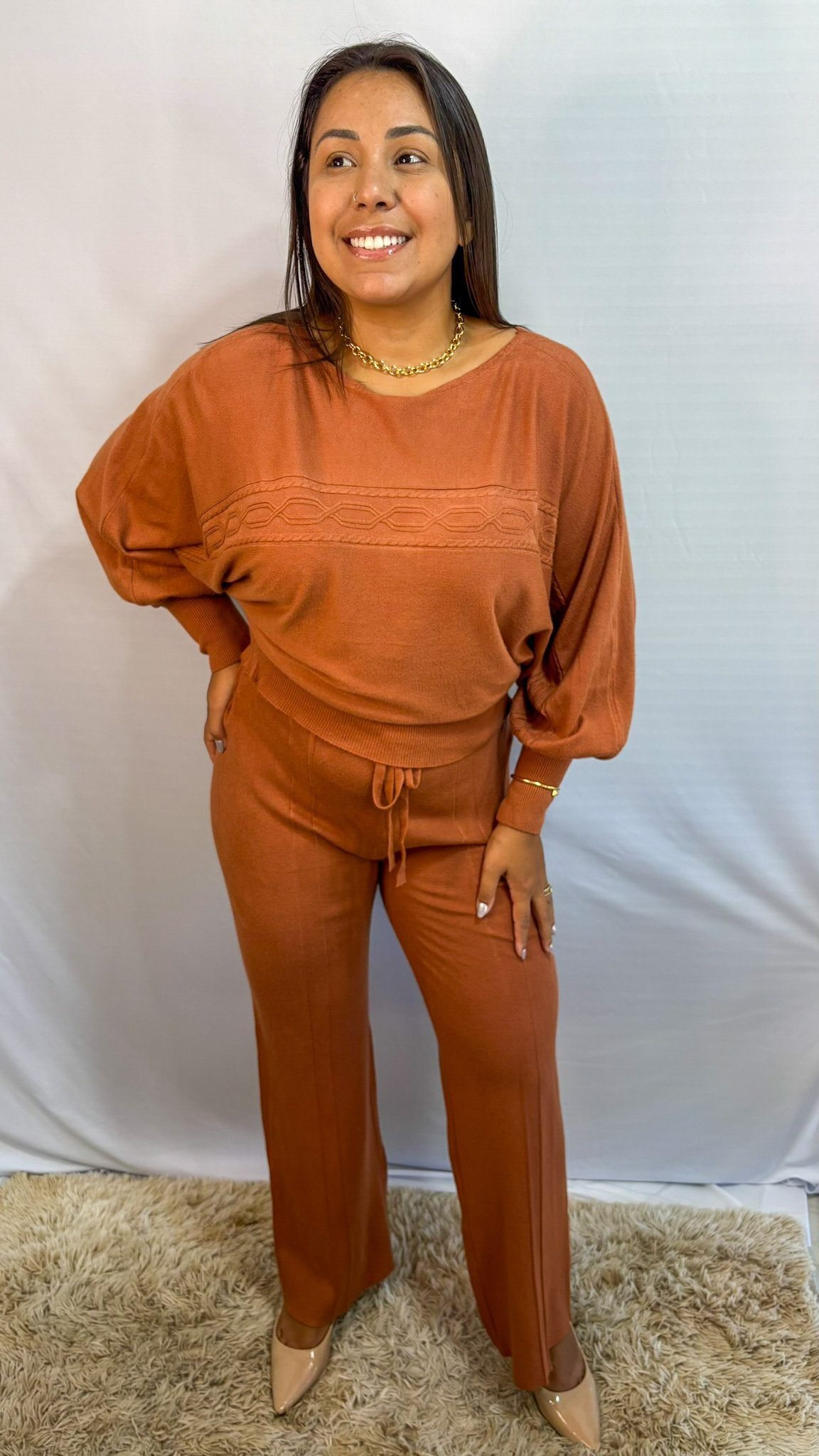 O onjunto modal terracota une conforto, elegância e praticidade em uma única peça. Seu tecido macio aliado à modelagem moderna garante um look charmoso e confortável para o dia a dia.